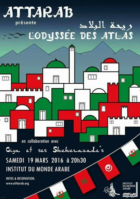 Dans sa nouvelle création pour 2016, le groupe ATTARAB vous invite à une expédition qui retrace l’anthologie de la musique du Maghreb (Maroc, Algérie et Tunisie) dans ses grandes lignes : Musique arabo-andalouse, musique soufies, musique Judéo-maghrébine, qui ont pu véhiculer un patrimoine culturel si riche, constituant une identité très influente, depuis quelques siècles de là.